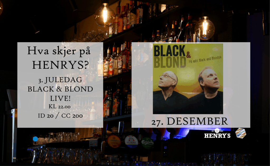 3. juledag på HENRYS! Black & Blond står for livemusikken denne kvelden – det blir garantert god stemning!