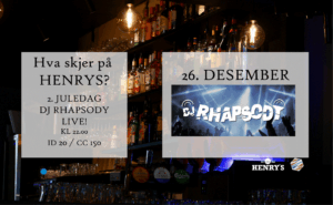 2. juledag på HENRYS!DJ Rhapsody kommer på besøk og sørger for topp stemning og dansegulv hele natta! Åpent fra kl.…
